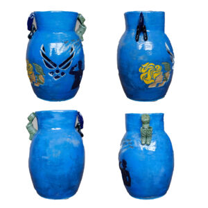 Artist Statement: My ceramic artwork aspires to bring awareness and visibility to female experiences and contributions to all branches of the United States Armed Forces. I make artwork based on my personal experiences as a female serving in the United States Air Force and now as a Retired Disabled Veteran. “She Served Too” incorporates three ceramic vessels symbolic of my service.