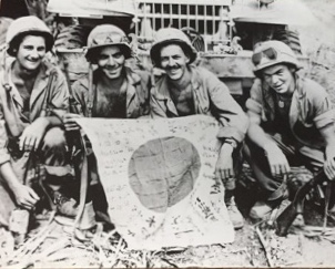 He also spoke of a patrol during which he came upon a clearing where he found eight Japanese soldiers who had stripped off their uniforms and were sitting in a circle, each holding a grenade. To his horror he watched as each man pulled the pin on his grenade.