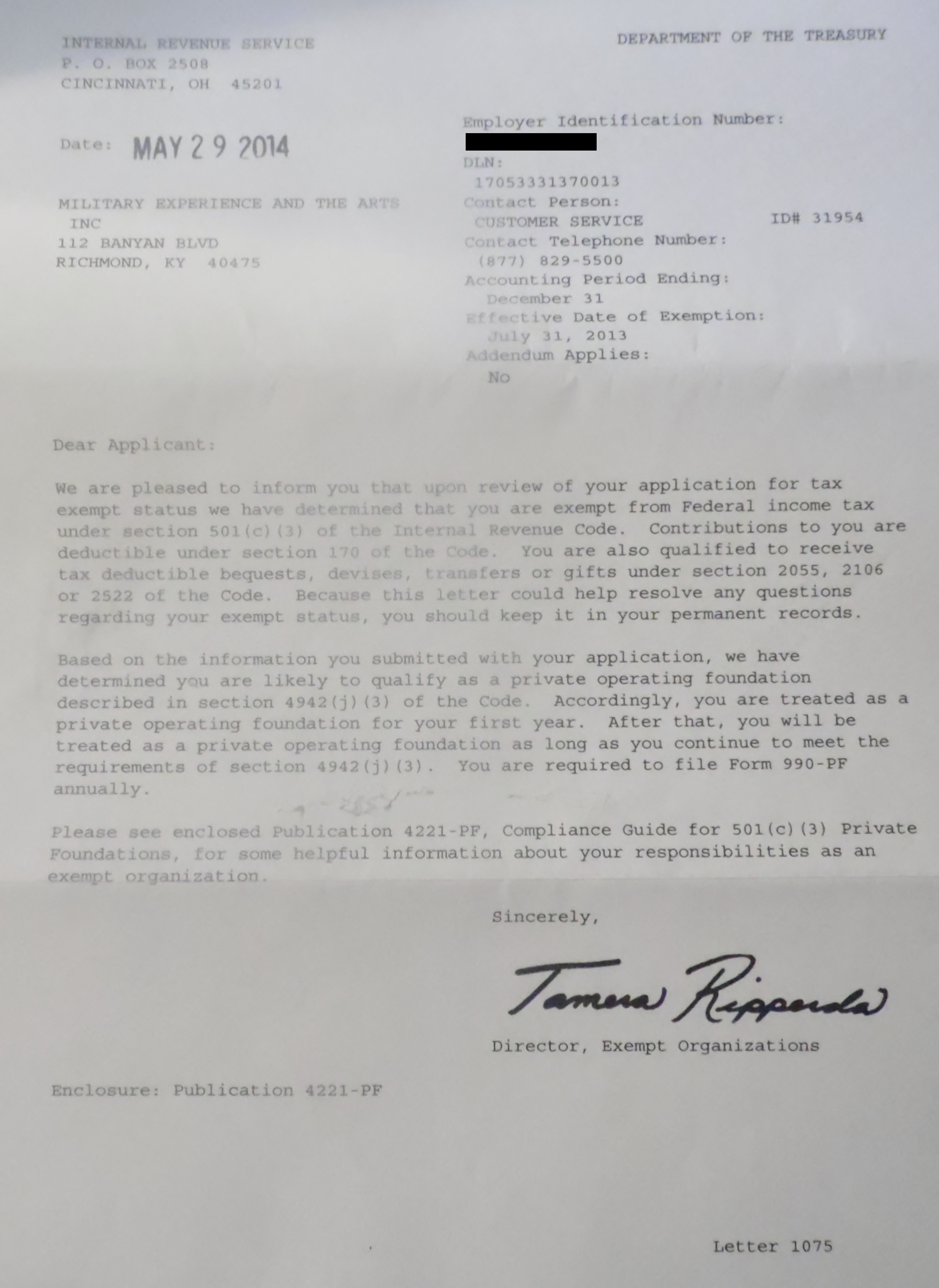To the Fans, Staff Members, and Contributors to MEA Publications, For the past six months we’ve worked with lawyers and accountants, sought counsel from the leaders of like-minded groups, and poured our energy and dedication to veterans, their families, and artists into creating a nationally recognized organization that provides members of military communities with access to the arts,…