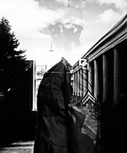 Artist Statement: As I wandered around Governors Island, I saw this reflection in a large plate glass window. Not only did it appear as a bizarre juxtaposition of what lay behind the glass, in front of the glass, above and below me, it was also an eerie reminder of the island’s use as a military installation for more than two hundred years.