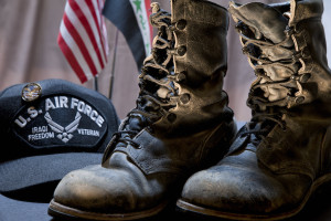 Notes: “Veteran” contains only the items that represent the thoughts in the front of my mind when I look back on my 24-year career. The worn combat boots have been featured in a few pieces of work, and the hat is something I have but have never worn – it serves to remind me how much I hated wearing a hat.